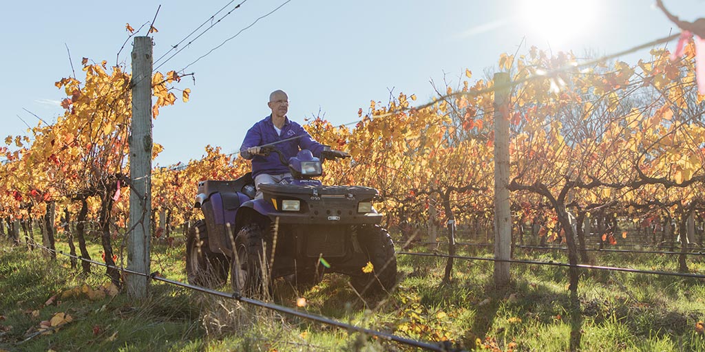 “This vineyard has given me an amazing sense of peace,” says Cate. “Sitting in the tractor, slashing six kilometres an hour for hours is just magic. It’s like meditation. I love it here.”