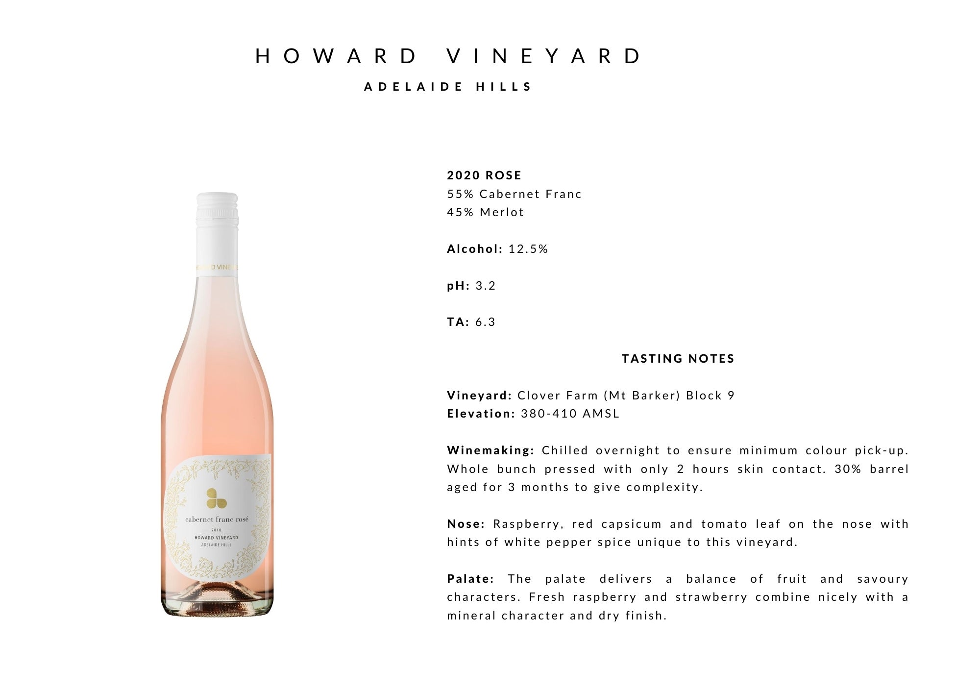 Head winemaker Tom Northcott’s winemaking approach is to pick at optimal ripeness for lean flavours to showcase the quality and true expression of their vineyards. Howard Vineyard wines are light to medium body with vibrant flavours and great natural acidity.