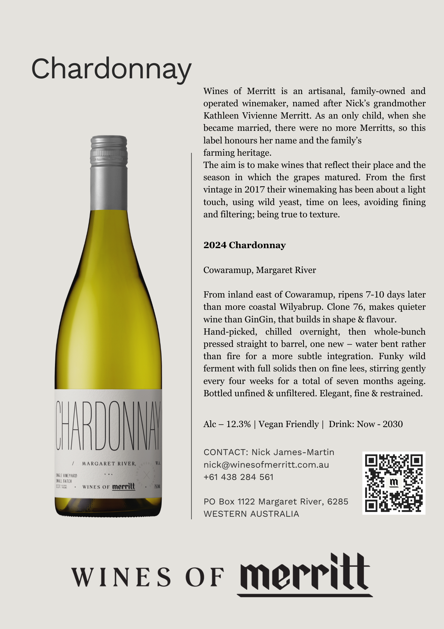 Hand-picked, chilled overnight, then whole-bunch pressed straight to barrel, one new - water bent rather than fire for a more subtle integration. Funky wild ferment with full solids then on fine lees, stirring gently every four weeks for a total of seven months ageing. Bottled unfined & unfiltered. Elegant, fine & restrained